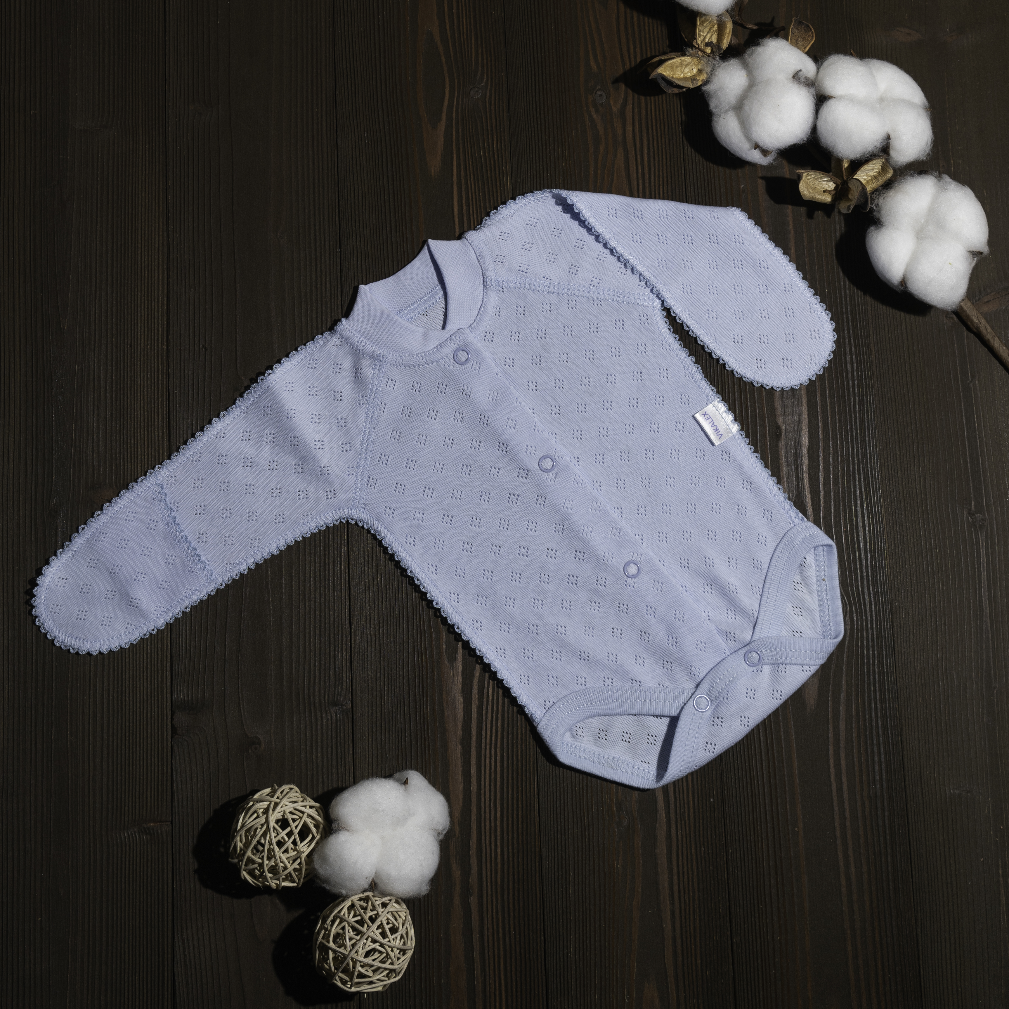 Боди Vikalex Ажур голубой длинный рукав 46