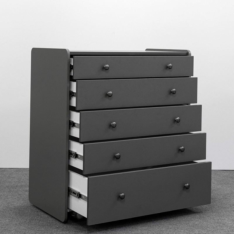 Комод Mari - это комод, созданный в современном стиле с учетом эргономики и трендов в индустрии детских товаров. Комод можно установить на колеса, что позволит беспрепятственно убираться за ним даже женщине. Пять вместительных ящиков на направляющих полного выдвижения с тихим ходом помогут сэкономить место и уложить все вещи по местам. В комплекте к верхнему ящику идет органайзер с секциями, для разграничения пространства. Боковые стенки изготовлены из экологически чистого материала, покрытые износостойкой безопасной краской.