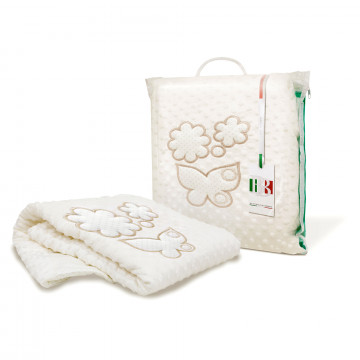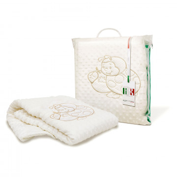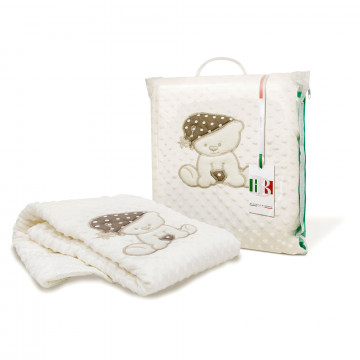 Плед Esspero универсален в использовании: его можно приспособить как покрывало или подстилку, положить в кроватку или коляску. Изделие выполнено из износостойких материалов, украшено дизайнерским гербом и упаковано в подарочную сумку.