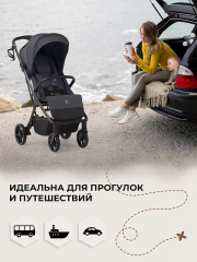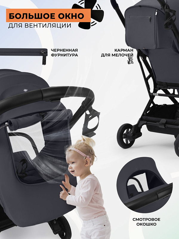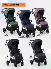 - Благодаря утеплённой накидке и продуманной системе вентиляции, коляска идеально подходит для прогулок в любую погоду – прохладной зимой и жарким летом.