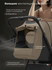 - Смотровое окошко на капоре для наблюдения за ребенком и вентиляционное окошко для обеспечения оптимальной циркуляции воздуха;