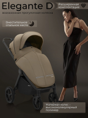 - Детская коляска SBL Elegante D обладает маневренностью, плавностью хода и отличной проходимостью. Все благодаря большим задним колёсам (26 см), передним поворотным колесам с фиксацией (19 см) из инновационного материала- высокомолекулярного полимера, а также пружинной амортизации на все 4 колесах;
