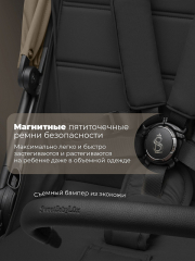 - Пятиточечные магнитные ремни с мягкими накладками и съемный поворотный бампер для быстрой и легкой посадки;