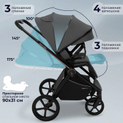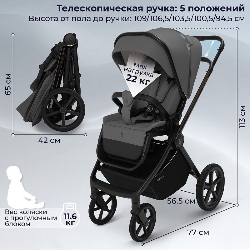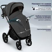 • Благодаря утеплённой накидке и продуманной системе вентиляции, коляска идеально подходит для прогулок в любую погоду – прохладной зимой и жарким летом.