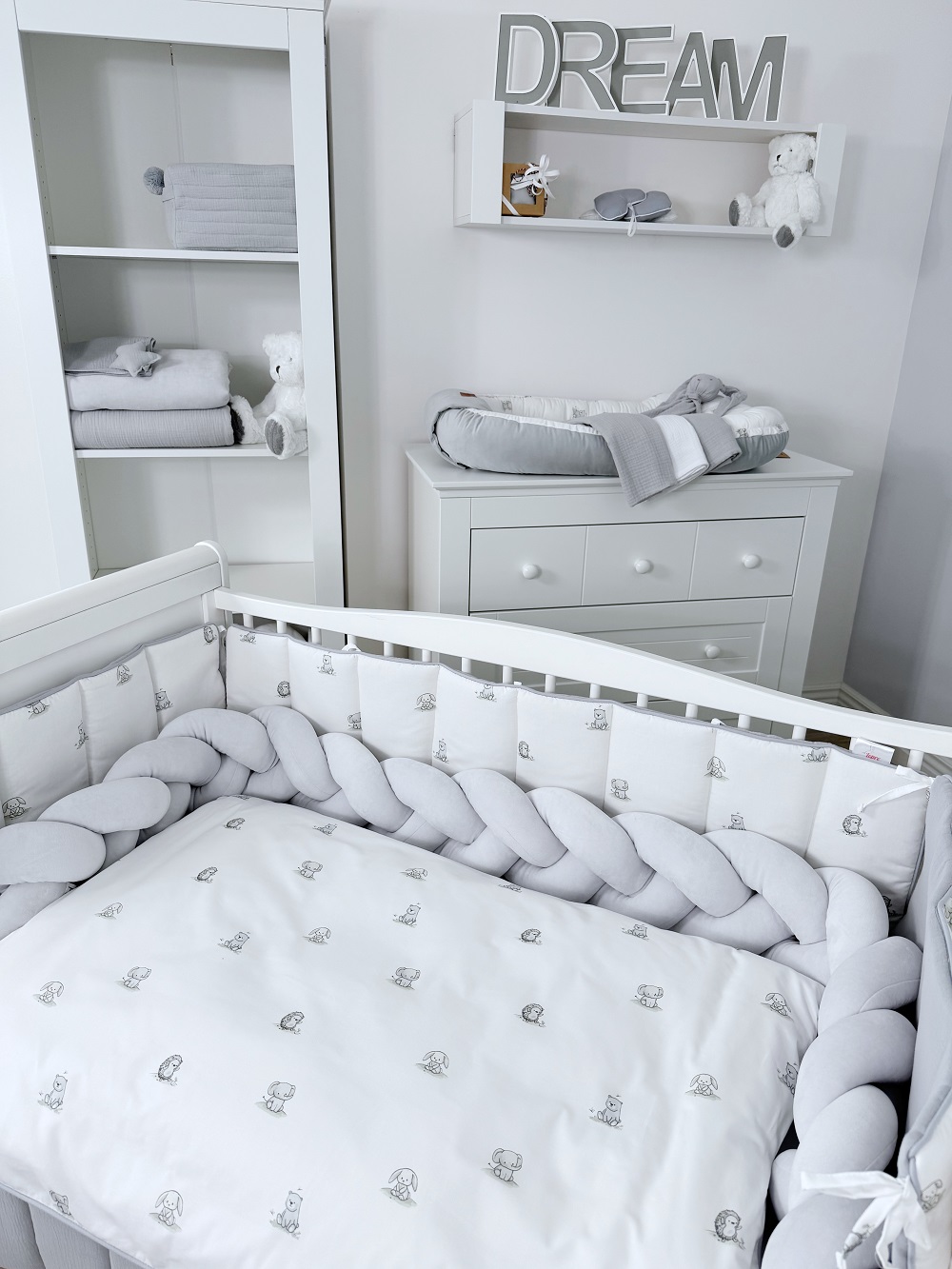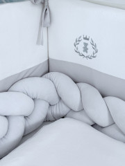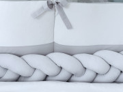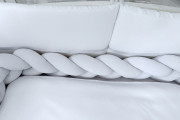 Модель сплетена в объёмную трёхжильную косу, создавая эффект уюта и мягко ограничивая пространство внутри кроватки.