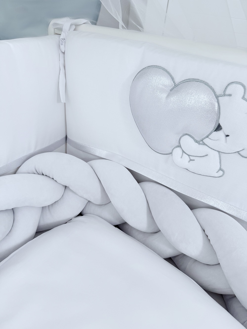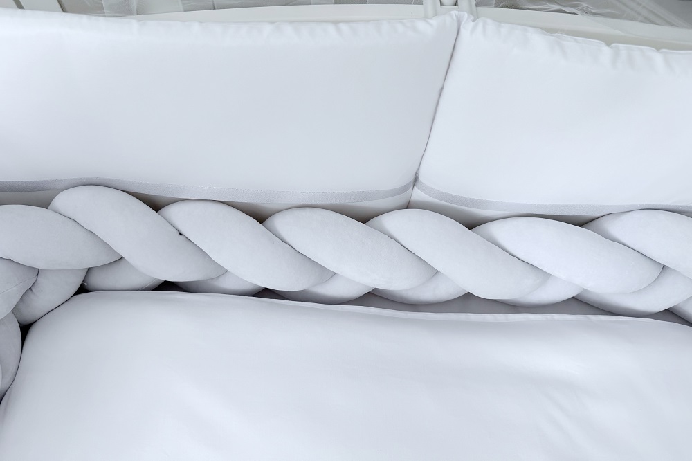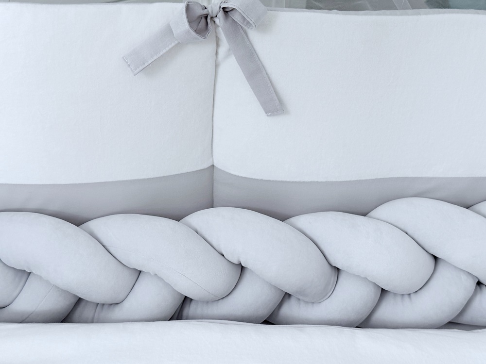 Элегантный бампер-коса из велюра — это не только декоративный элемент, но и дополнительная защита для малыша.