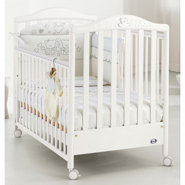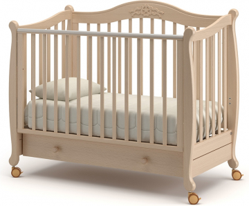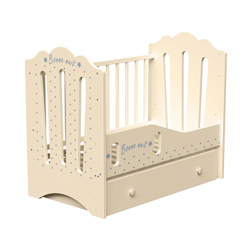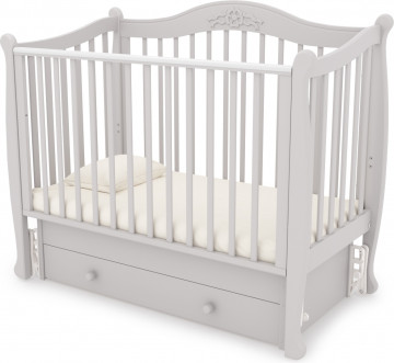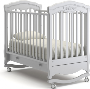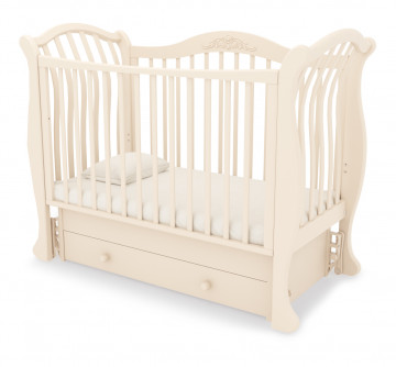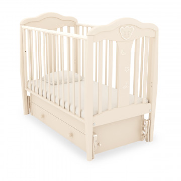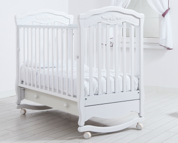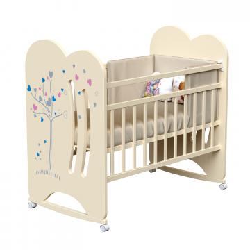 Кроватка ВДК LITTLE HEART с оригинальным дизайном, который отличается красивыми резными аппликациями и дополнен очаровательными рисунками. Модель выполнена в двух цветовых вариациях: белый и слоновая кость, поэтому прекрасно впишется в интерьер любой детской комнаты. Оснащена пользями для качания, чтобы мягко убаюкивать ребенка перед сном. А также, колесной базой, благодаря которой, вы можете легко перемещать кроватку по квартире. Модель выполнена из экологически чистых материалов безопасных для детей.