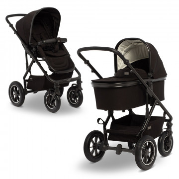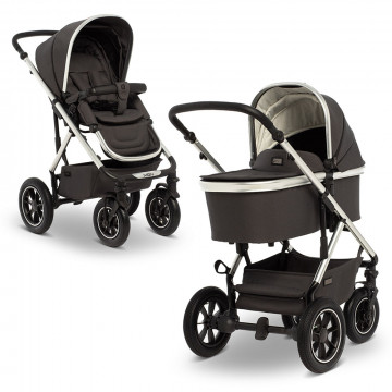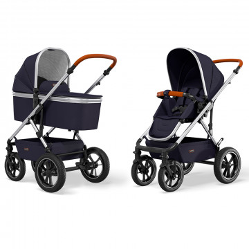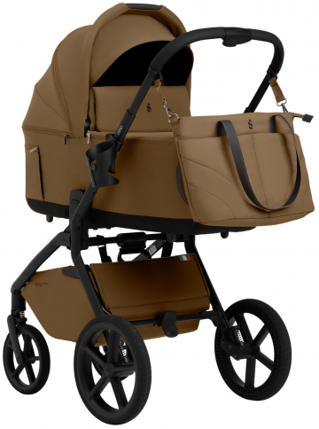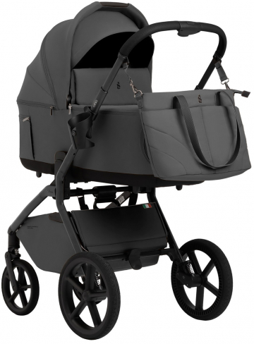 Прочное и лёгкое универсальное шасси сделано из алюминия. На раму реверсивно устанавливаются все модули бренда. Конструкцию можно компактно сложить, её удобно переносить и хранить в квартире или багажнике машины. Надувные каучуковые колёса устойчивы к проколам и износу. Передние поворотные колёса можно фиксировать при необходимости. Родительская ручка обтянута мягкой экокожей, регулируется по высоте. Модель дополнена большой багажной корзиной для вещей малыша и мамы.