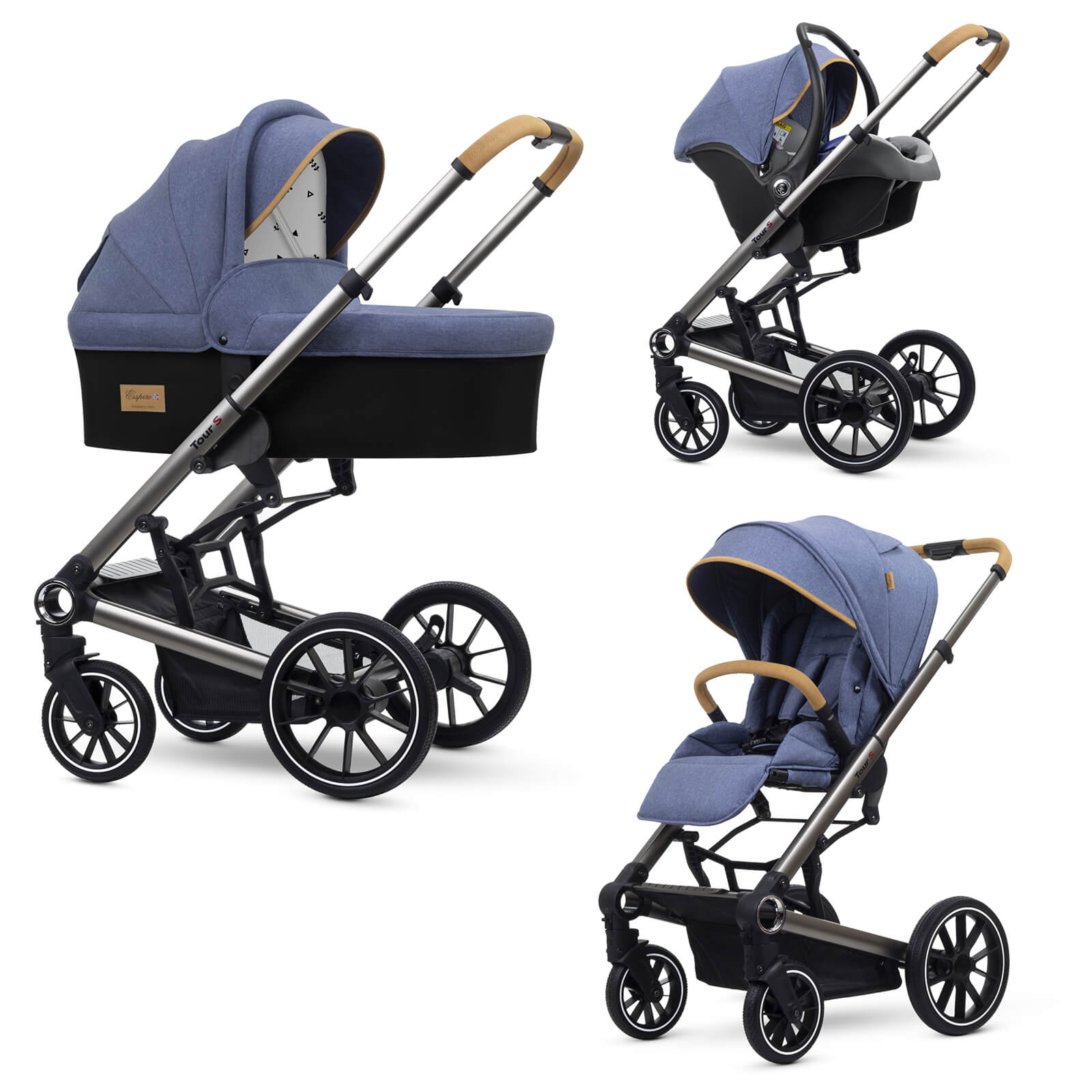 Коляска 3 в 1 Esspero Tour S – новая модульная система от норвежского производителя обеспечит транспортом вашего ребенка с рождения и до 3-4 лет. С ней будет возможно совершать прогулки как на улице, так и автомобильным транспортом. Авиационный алюминий, который послужил основой для шасси, обеспечивает общую прочность конструкции и повышенную износостойкость. Тип сложения книгой и телескопическая ручка позволяют получить весьма компактные размеры для хранения или перевозки. Все колеса оснащены современной амортизацией. Передняя пара поворотная и может фиксироваться при необходимости в положении «прямо». Они изготовлены из износостойких материалов и не прокалываются. Большая съемная корзина для покупок или вещей ребенка размещается в нижней части шасси.