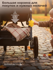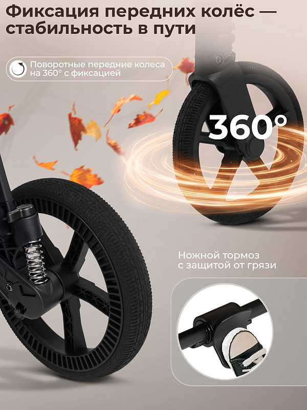 Новые интонационные колеса из высокомолекулярного сшитого полимера с регулируемой подвеской обеспечивают мягкую и комфортную прогулку как в городе, так и на природе. Передние поворотные колеса с пониженной фиксацией обеспечат превосходную маневренность.